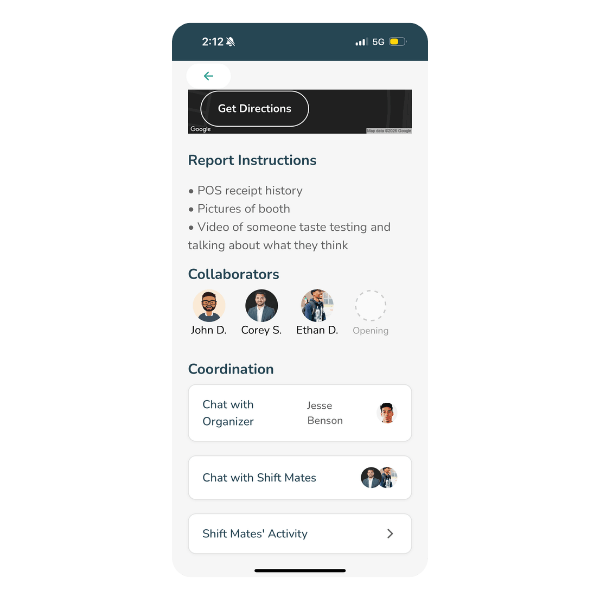 Automatic group chats, comment sections, and activity visibility between ambassadors on tasks and shifts keep work organized and allow for better collaboration.
